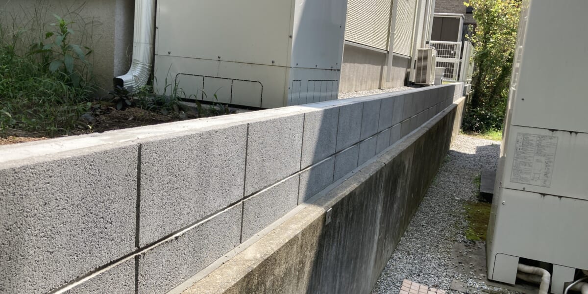 時間が経つにつれて木製の木が腐食して壊れてしまいそうでした。腐食しないブロックにて土留め致しました。以前は地面と同じ高さの板でしたのでお隣様に砂利がこぼれてしまっていましたが今回は10㎝ほど高くしましたのでこぼれる心配はありません。