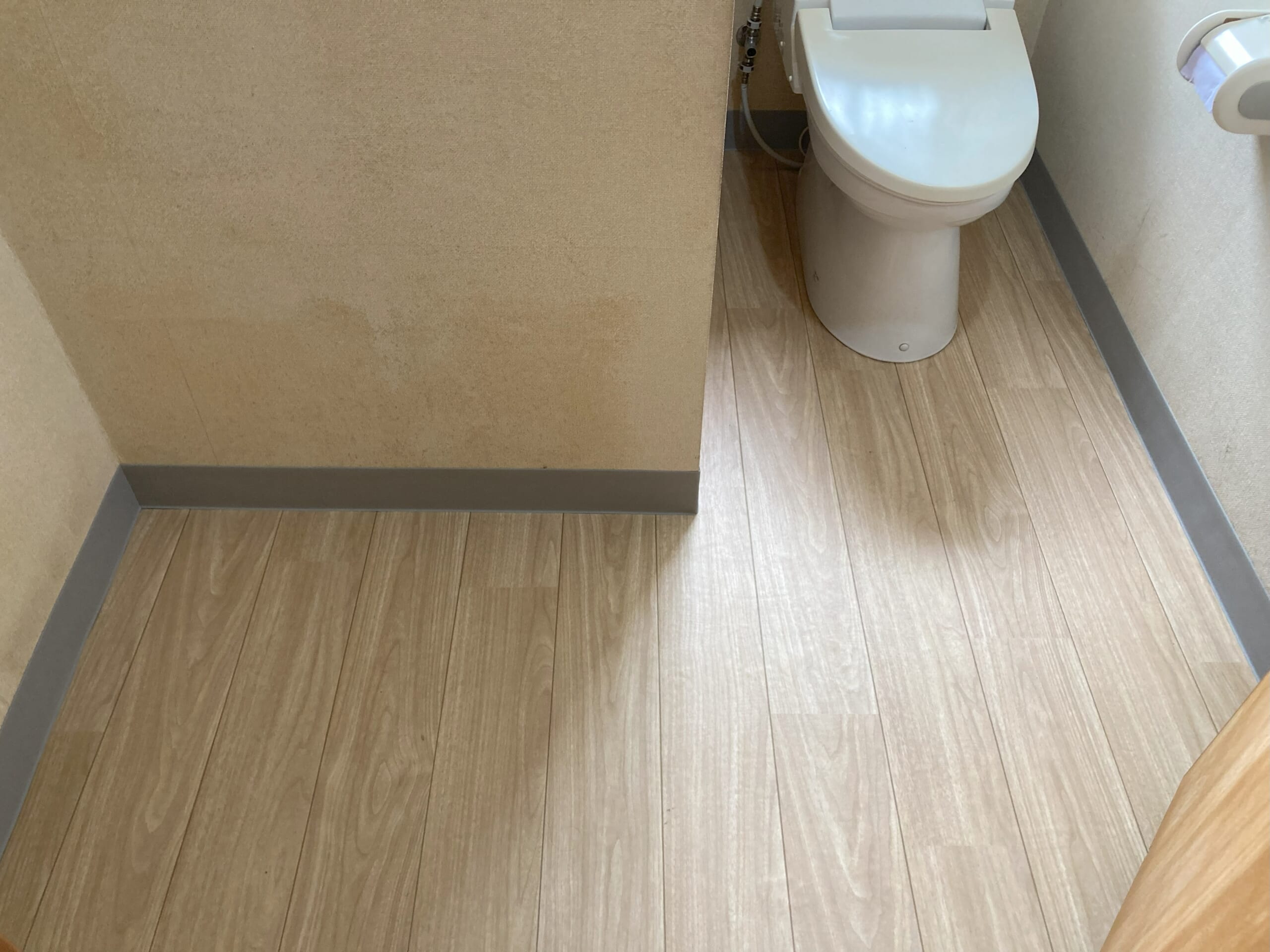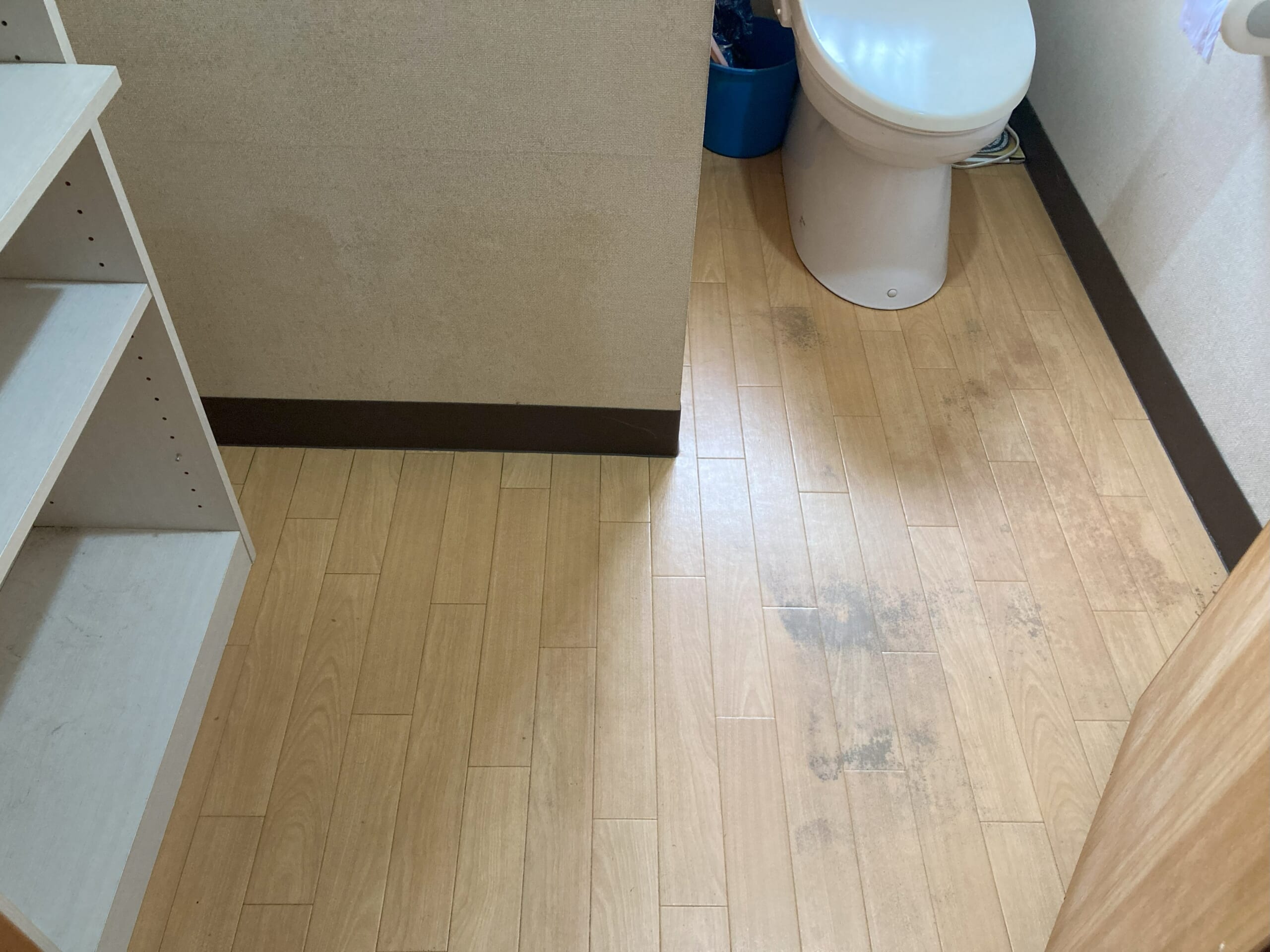 以前手洗い器より水漏れがしていて修理したのですが、その時の水が床にしみてカビが生えてしまったようです。全て剥がして新しい床材に張り替えました。