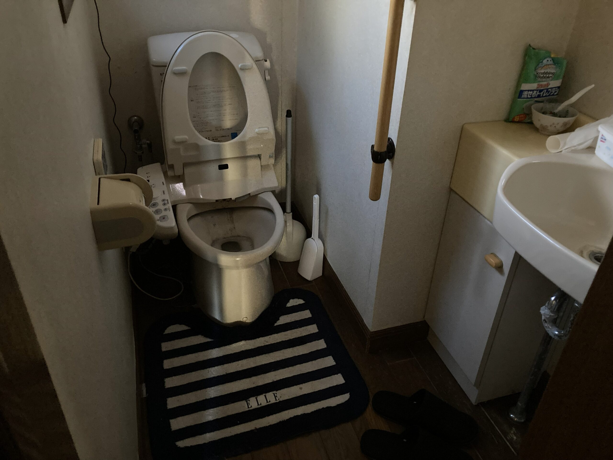 こちらの家には月何度かしか使用していないためにお手入れが出来なかったそうです。転居してお使いになられるとのことできれいにさせていただきました。トイレ本体の交換とフローリングが腐食していましたので貼替しました。せっかくなのでクロスも張替えて一新。