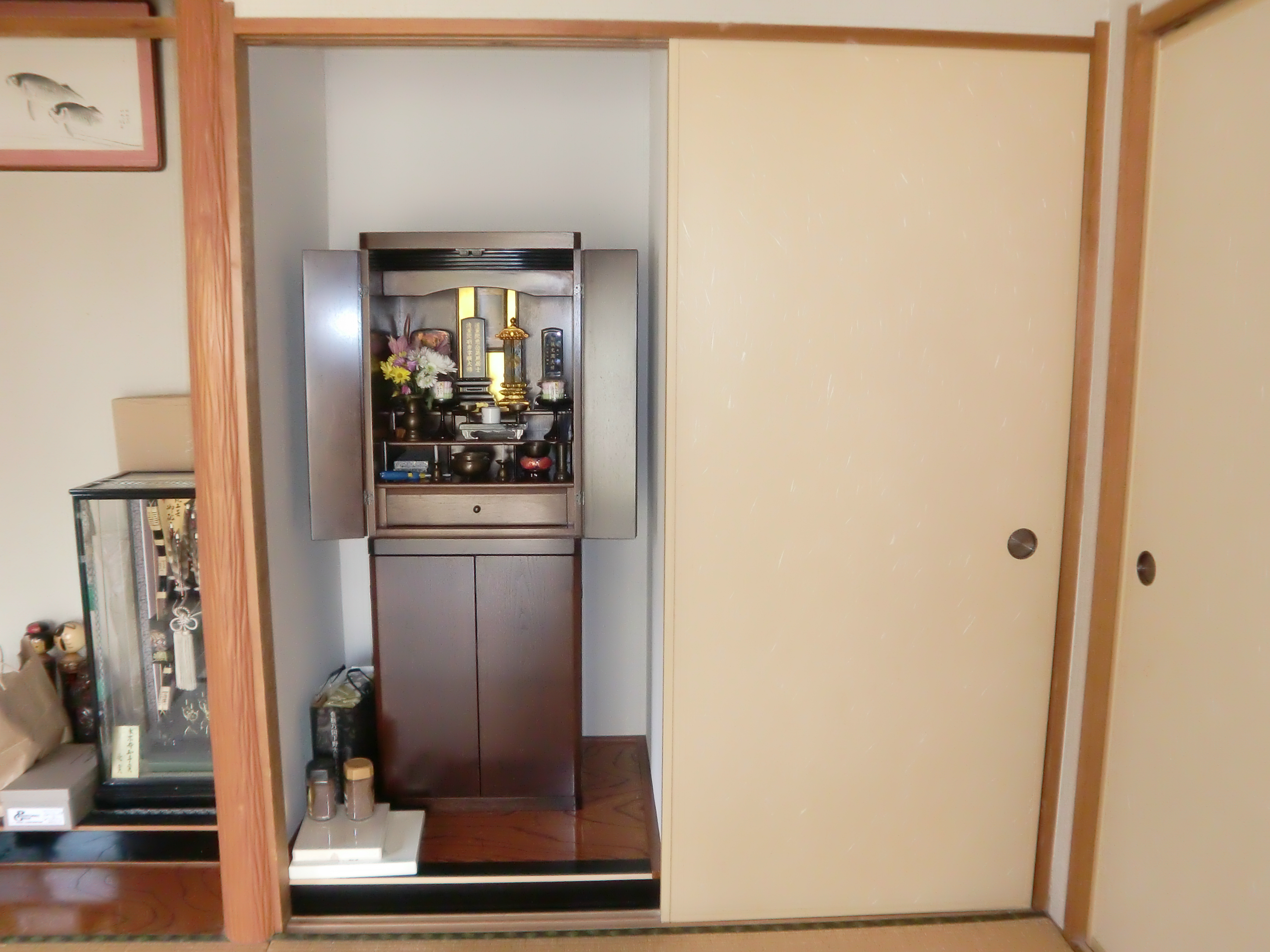 仏間を作りたいとのことで押入れの半分の棚を撤去し床上げ。間に壁を設けて仏間を造りました。反対側はそのまま押入れとして使用しています。