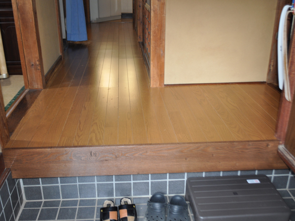 床を部分的に直すと仕上げ材が部分的にかわり、見た目も悪いので全面貼り替えをお勧めしました。その際、部屋ごとに段差があったので出来るだけ段差のない床高さになるようにしました。