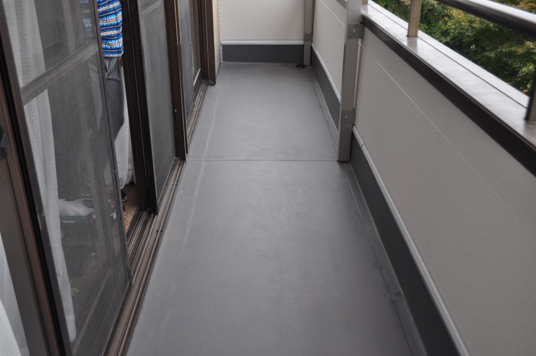 一度下地を撤去して水が流れるように勾配を取り直しました。新たにシート防水を施し、内壁も貼り替えました。屋根の雪が落ちでバルコニーに溜まらない様にテラス屋根をご提案させていただきました。