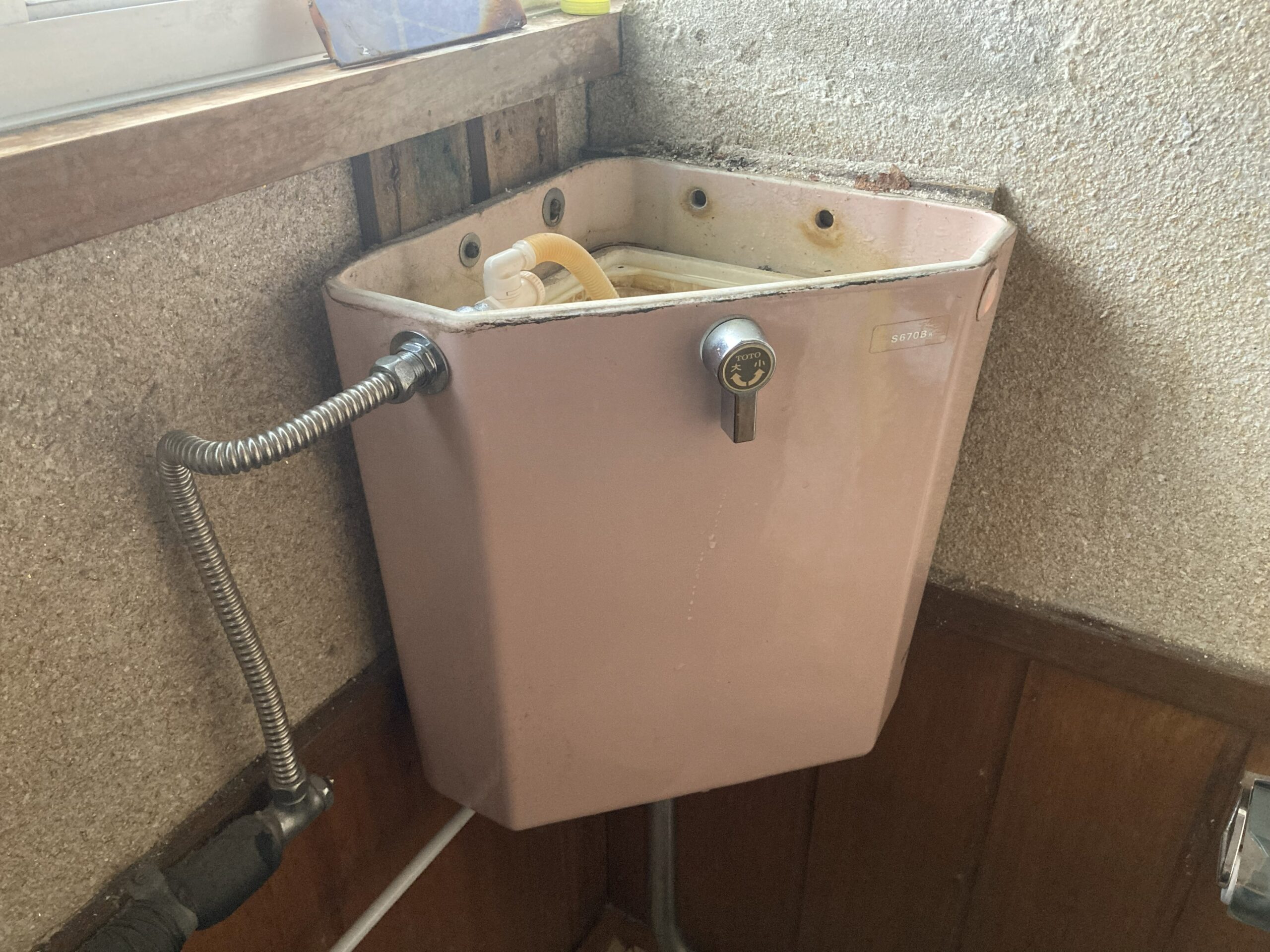 タンクをのぞいてみると水が溜まっていません。タンク内に水を送る金具がビニールひもで固定され水が送られていませんでした。お客様に聞いても「わからない」との事。まさにミステリーです。ひもを外して水が送られたのですが、金具が壊れていて今度は水が止まりません。金具の交換です。多分それが原因でお子様がひもで固定したんだと思います。