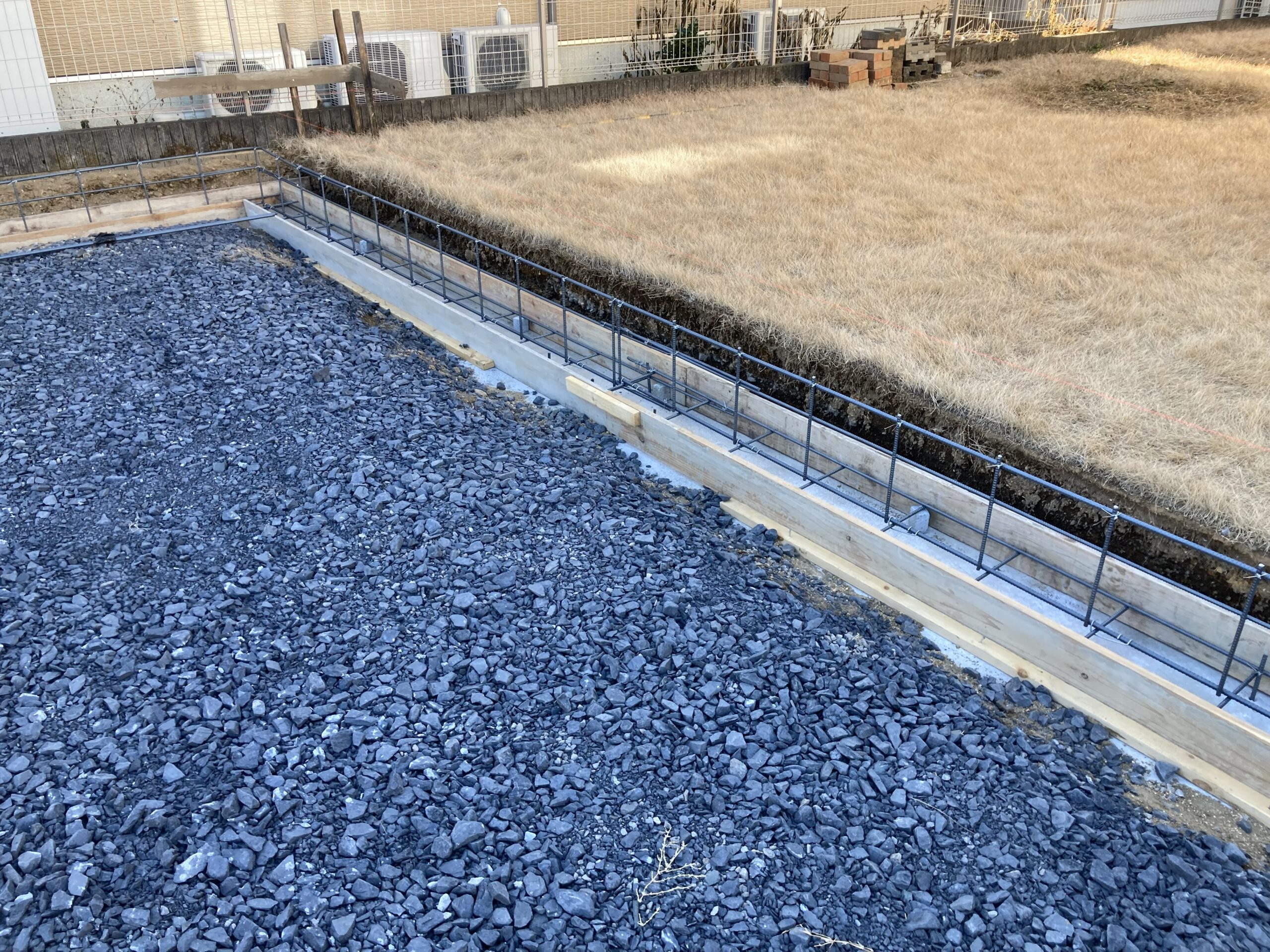 布基礎の配筋が完了しました。検査前に規定通り配筋されているか確認します。