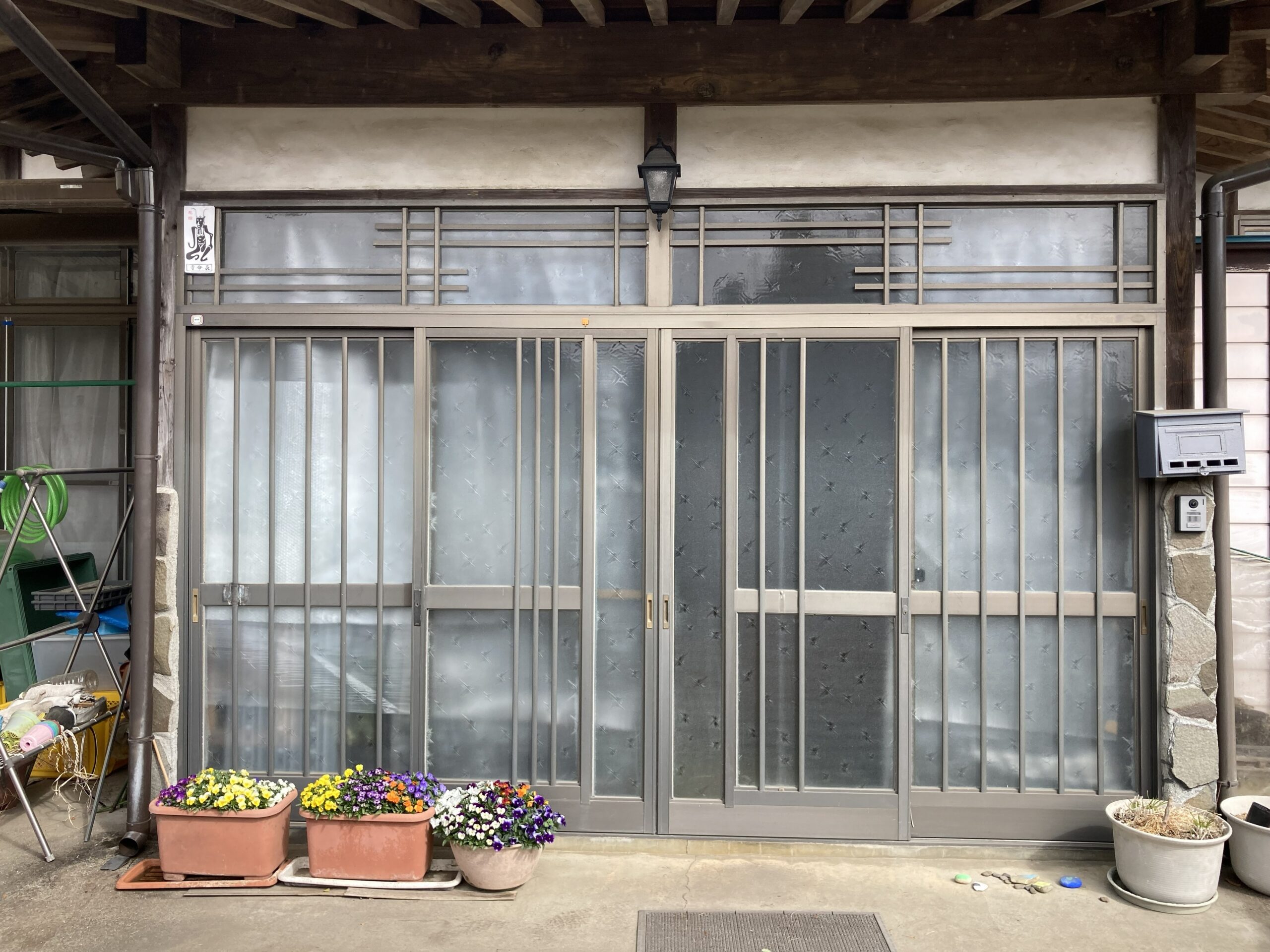 4枚引きの大きな玄関引き戸ですが「LIXIL」のリシェントにてリフォーム致します。 1日で完了するのでお客様の負担もございません。