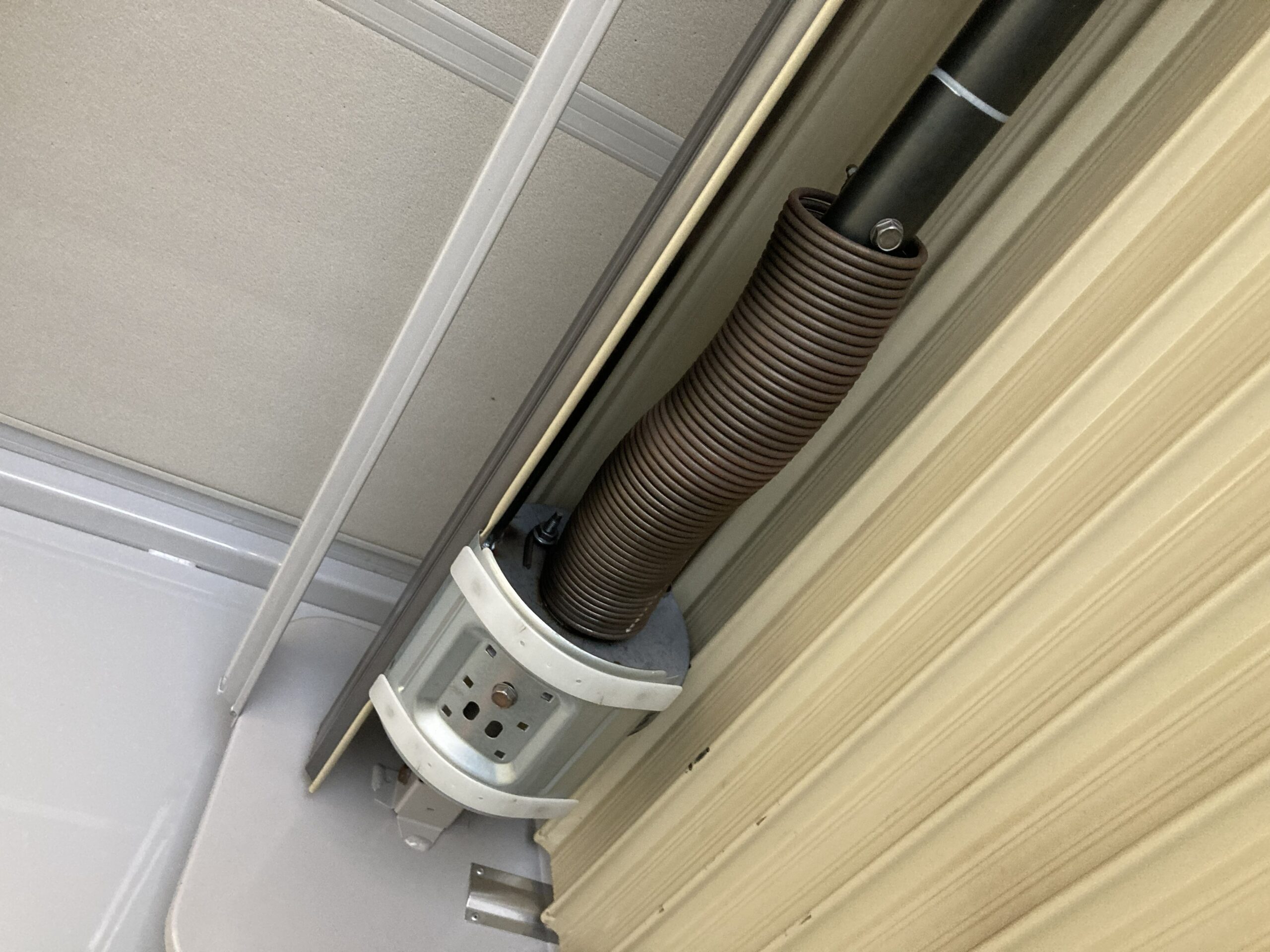 ガレージのシャッターですが開けるのが重くなってしまいました。ばねの調整を致します。