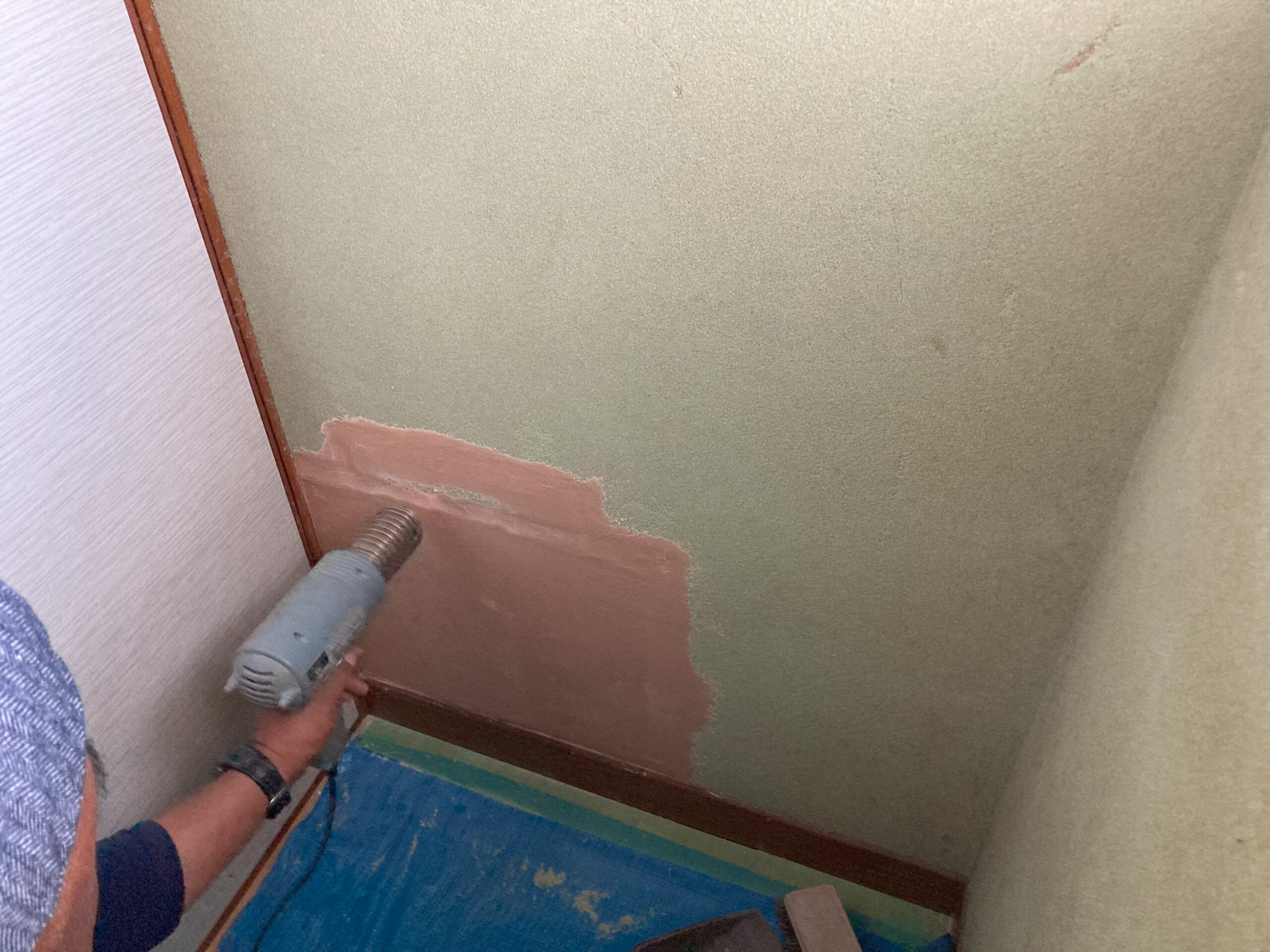 穴の開いた壁の補修です。穴をふさぎパテにて平らに仕上げ、同じ壁材にて仕上げていきます。