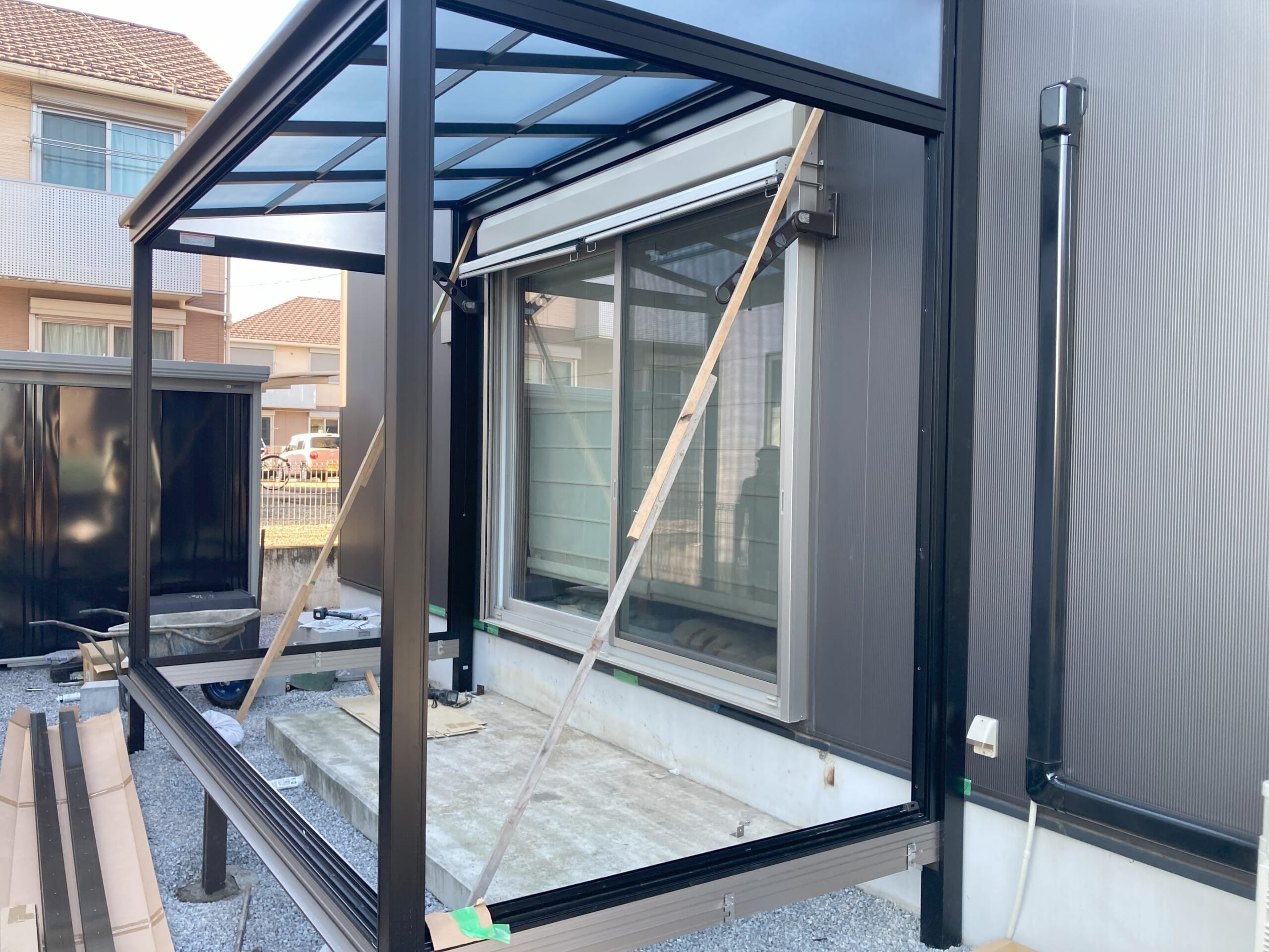 【LIXIL】ガーデンルームGFの組立てを開始いたしました。取付箇所が特殊なので他社様ではできないと断られたそうです。アサヤマではお客様の為に試行錯誤してご希望にお答えいたします。