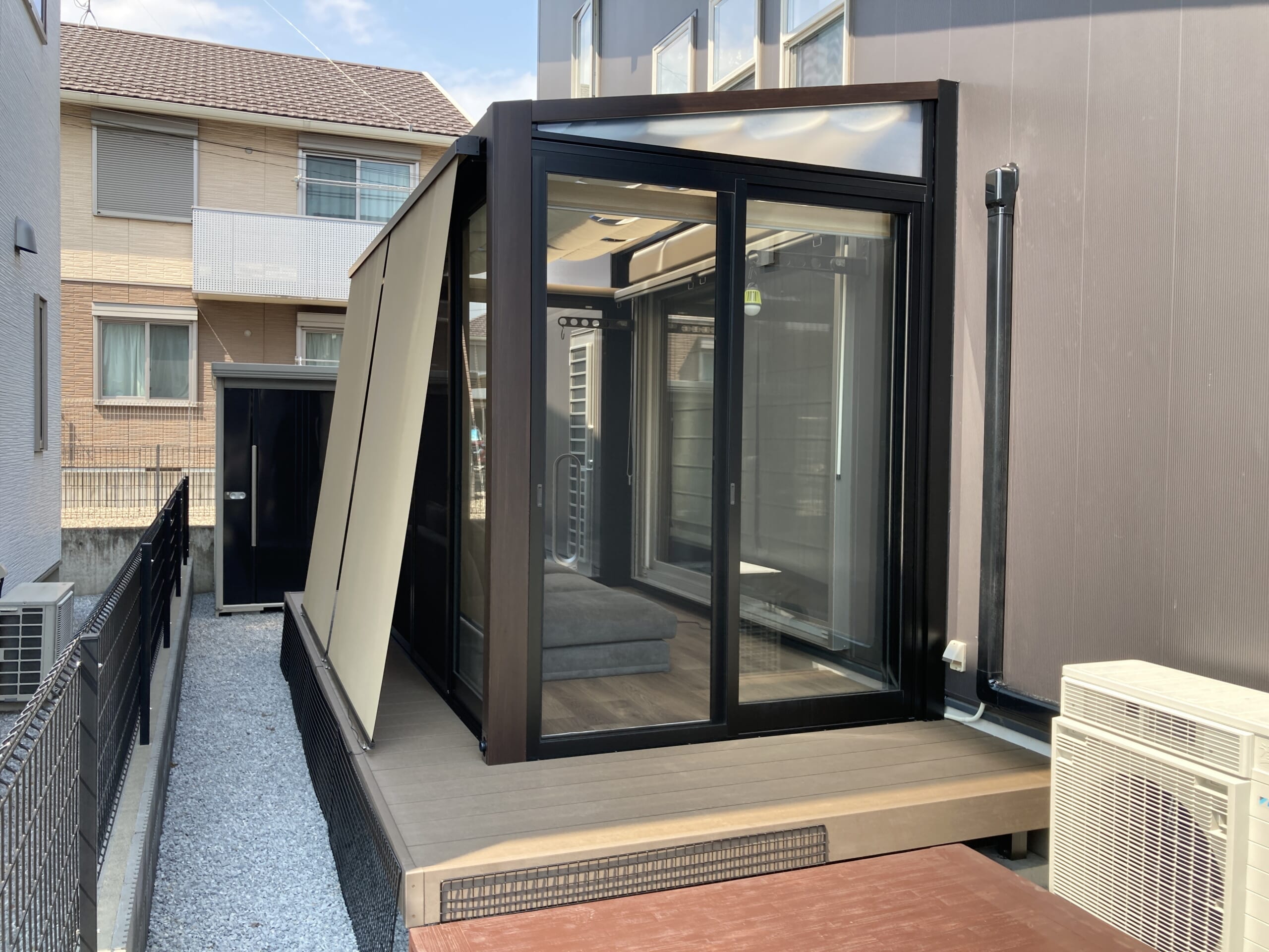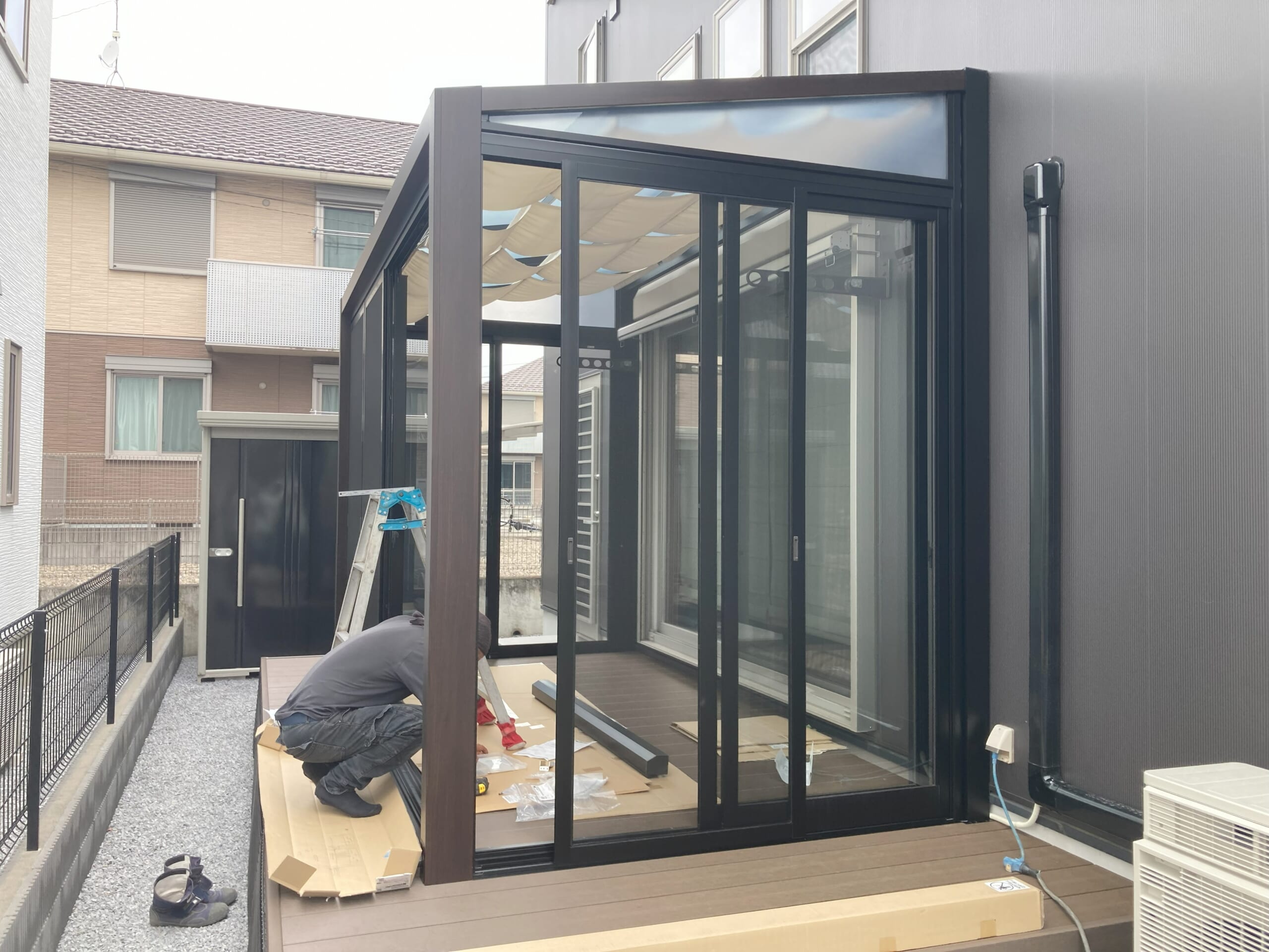 【LIXIL】ガーデンルームGFの組立も最終段階になりオプションを取り付けて完成となります。