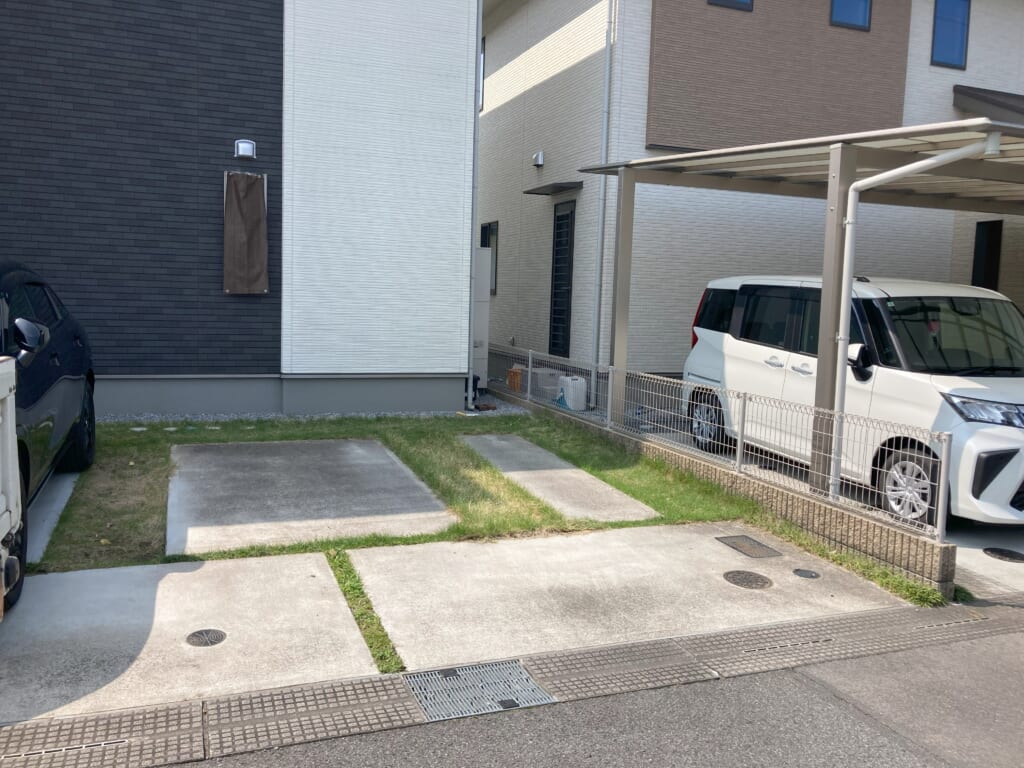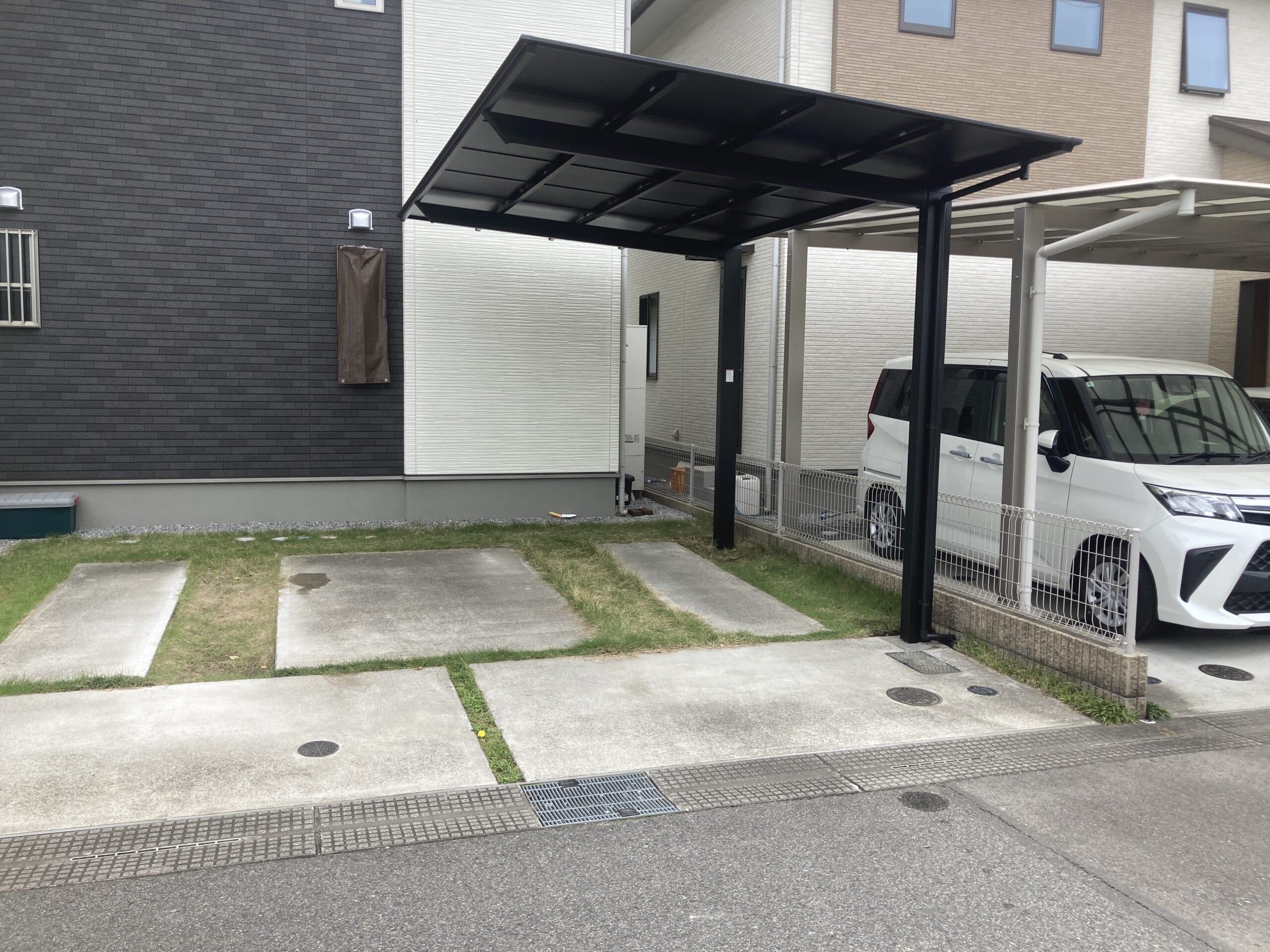 さくら市 S様邸 カーポート設置 完了 お知らせ 2025.06.12(最終更新 2025.06.12) 【LIXL】ネスカ F 1台用カーポートです。屋根はブラックポリカーボネートです。透過性がなく、遮熱効果.・太陽光をカットし、車内温度の昇温抑制効果があります。パネル上面の汚れが目立ちにくく、屋根下面のマットな質感が天井材のような高級感を演出します。 施工前 施工後