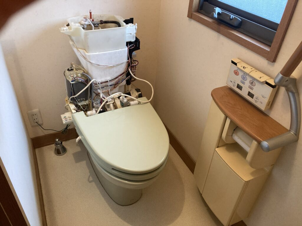 2階のトイレが水漏れした為お客様自ら修理しようとしたそうです。メーカーに問い合わせたところ20年前の製品なので部品がないと言われました。本体交換のお声をいただき1階のトイレも交換する運びとなりました。